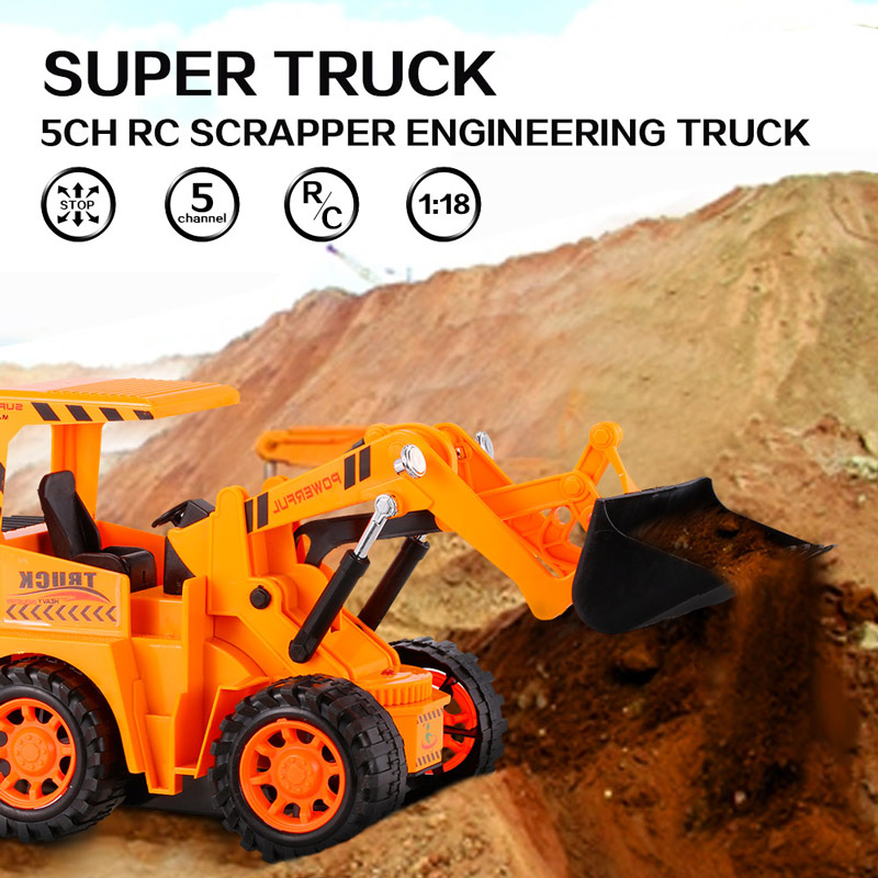This is a 1/18 fully-operational radio remote control scrapper truck toy. It is made from high quality and reliability materials, and it can move forward, backward, left, right. Besides, high simulated colorful lamps make it more attractive. It is a perfect gift for children and anyone who wants to experience a engineering driver.