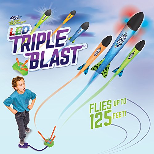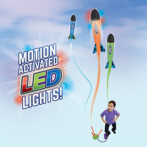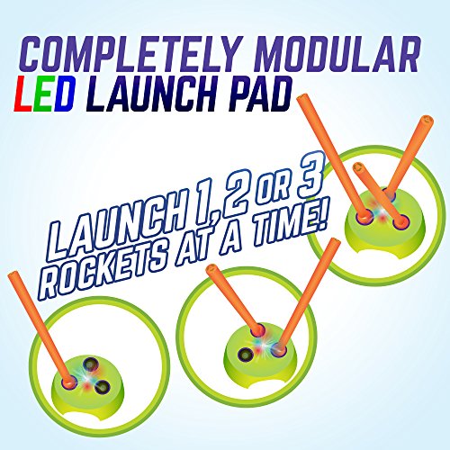 Mission Control is on alert.? Conditions are perfect for blasting off one, two or all three Rockets at the same time for distances up to 150’ feet! The launch sequence is simple- the ruggedly constructed launch tubes easily snap into the LED base station ports. Once attached, smoothly adjust each launch tube in its awesome 360º orbital port.? The safe, soft foam rockets can be targeted to ‘Blast Off ’ in unlimited angles for max height or distance.? Just jump up and STOMP on it with all your weight.? A burst of air rushes through the tubing, launching the 9” foam rockets off the pad and into the stratosphere.? Mission accomplished! Ages 6 and Up. 0 |