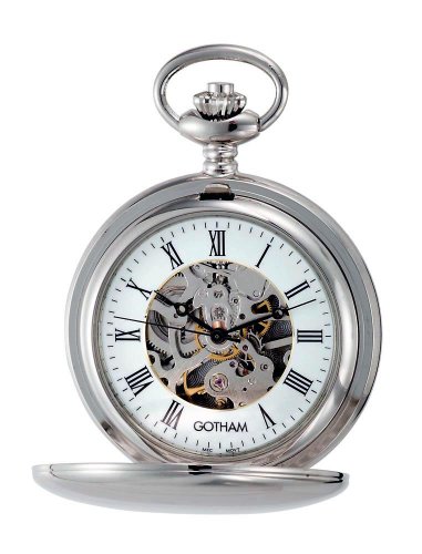 -. Title : Gotham Men's Silver-Tone 17 Jewel Mechanical Double Hunter Pocket Watch # GWC14050S