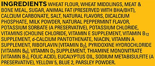-. Binding : Misc. -. Brand : Pedigree -. Feature : Refresh your dog's dental care routine with PEDIGREE DENTASTIX Fresh Biscuit Large Treats for Dogs. Our mint-flavor dog biscuits for daily oral care have a special crunchy texture that is proven to reduce plaque and tartar buildup, so you can treat your dog and clean their teeth at the same time. / These PEDIGREE DENTASTIX Dental Treats are also formulated with a patented-ingredient system that helps freshen breath. PEDIGREE Oral Care Treats are dog snacks you can trust, and your dog will love. / PEDIGREE DENTASTIX Fresh Biscuit Dog Treats come in a tasty mint flavor that your dog will love. Our patented ingredient system helps freshen breath. Contains (4) 1-pound packs of PEDIGREE DENTASTIX Fresh Biscuit Large Treats for Dogs. -. Label : Pedigree Treats -. Manufacturer : Pedigree Treats -. Model : 10119169-Parent -. MPN : 10119169-Parent -. PackageQuantity : 1 -. PartNumber : 10119169-Parent -. ProductGroup : Pet Products -. ProductTypeName : PET_SUPPLIES -. Publisher : Pedigree Treats -. Studio : Pedigree Treats -. Title : PEDIGREE DENTASTIX Fresh Dental Dog Treats