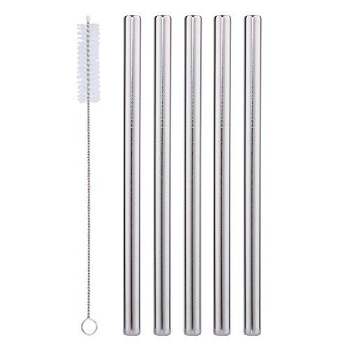 Sungrace Reusable Metal Stainless Steel Extra Wide Smoothie Drinking Straws Set with Cleaning Brush(5 Pack, Straight)