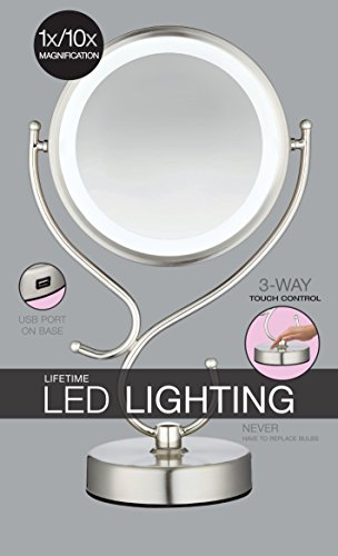 -. Feature : 3 way touch control low, medium and high / 1X/10X double-sided magnification for true viewing and flawless makeup application / USB port on base / Elegant two-tone nickel finish - goes perfect with any decor! / Lifetime LED lighting - never replace a bulb again!