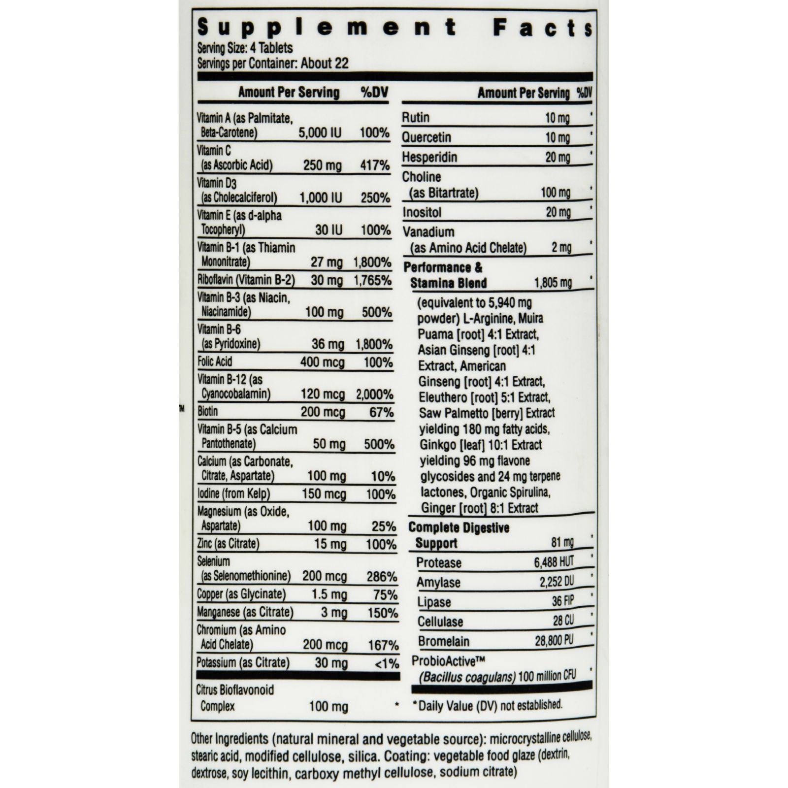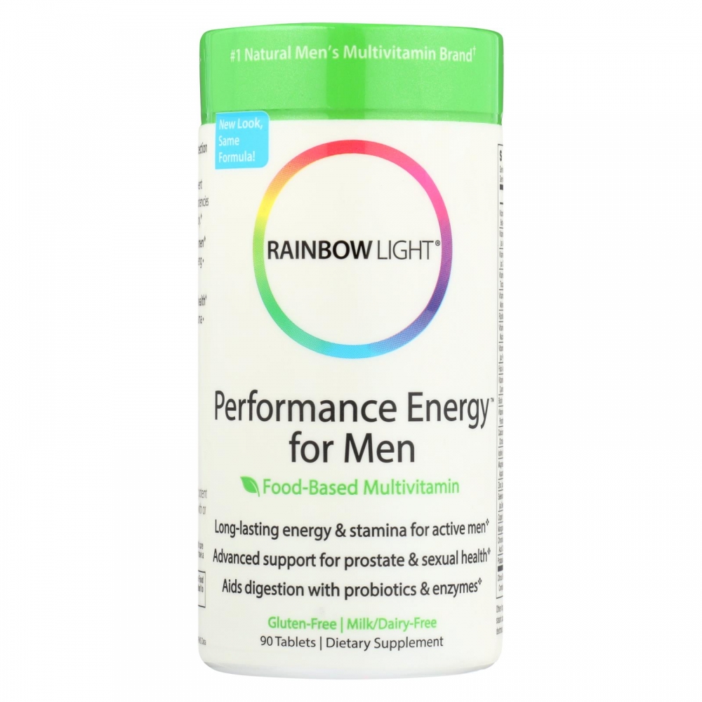 | Rainbow Light Performance Energy Multivitamin for Men Description: Bio-Balanced Systems Food-Based Multivitamin For Physical and Sexual Energy Stimulant-Free Natural Fuel Promotes Stamina and Endurance Performance Energy for Men Multivitamins contain potent vitamins and minerals to address male-specific daily health requirements throughout the day, plus energizing superfoods and invigorating herbs to promote stamina and endurance. Vitamins A, C, D3 and E promote eye, skin and immune health, and metabolism, and vitamin B complex provides natural energy. Amino acid L-arginine and extra zinc support prostate and immune system health, and promote improved circulation for heart and sexual function. Live plant-source enzymes and probiotics (healthy bacteria) promote easy digestion without stomach upset. Free Of Artificial colors, flavors, sweeteners, preservatives, sugar, lactose/dairy, wheat, gluten and yeast. Disclaimer These statements have not been evaluated by the FDA. These products are not intended to diagnose, treat, cure, or prevent any disease.Ingredients : Vitamin A (Beta-Carotene Palmitate) 8000IU, Vitamin C (Ascorbic Acid, Magnesium Ascorbate) 300mg, Vitamin D3 (Cholecalciferol) 50IU, Vitamin E (d-Alpha Tocopheryl Succinate) 60IU, Thiamin (Vitamin B-1) 27mg, Riboflavin (Vitamin B-2) 30mg, Niacin (Vitamin B-3) 160mg, Pyridoxine (Vitamin B-6) 36mg, Folic Acid 400mcg, Cyanocobalamin (Vitamin B-12) 120mcg, Biotin 300mcg, Pantothenic Acid (Vitamin B-5) 180mg, Calcium Carbonate 200mg, Iodine 150mcg, Magnesium 200mg, Zinc 20mg, Selenium 100mcg, Copper 2mg, Manganese 3mg, Chromium 150mcg, Potassium 50mg, Bromelain 43200PU, Protease 3234HUT, Amylase 251DU, Lipase 3LU, Cellulase 3CU, Citrus Bioflavinoids 36mg, Quercetin 15mg, Rutin 15mg, Hesperdin 26mg, Boron 2mg, Vanadium 5mg, Choline 180mg, Inositol 30mg, PABA 20mg, Lecithin 60mg, FOS 15mg, Spirulina 600mg, Octacosanol 120mcg, Rice Bran 300mg, Wheat Sprouts 200mg, Kelp 30mg, Alfalfa Juice Concentrate 12 mg, Tomato Paste 50mg, L-Carnitine 12mg, L-Glutamine 60mg, L-Leucine 12mg, L-Isoleucine 6mg, L-Valine 12mg, Taurine 60mg, and Eleuthero 600mg. Country of origin : USA Gluten Free : Yes Size : 90 TAB Pack of : 1 Product Selling Unit : each |