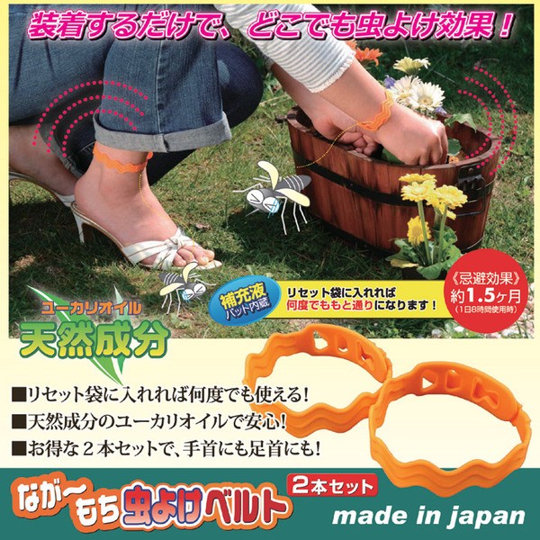 【商品名】なが~もち 虫よけベルト/虫除けリング 【2本セット】天然成分使用 〔屋外活動 キャンプ 山登り イベント 野外作業〕