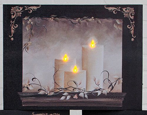Three Candles Flickering Light Canvas Wall Plaque