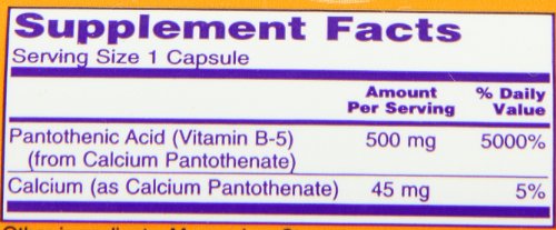 -. Title : NOW Foods Pantothenic Acid, 100 Capsules / 500mg (Pack of 2)