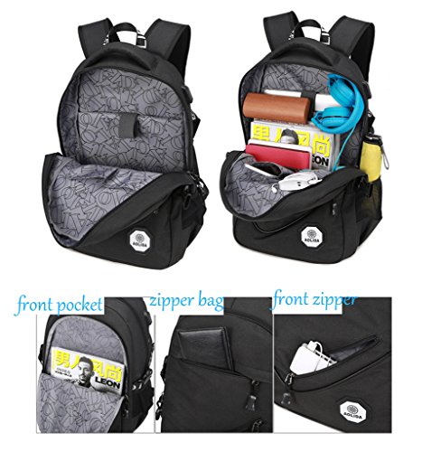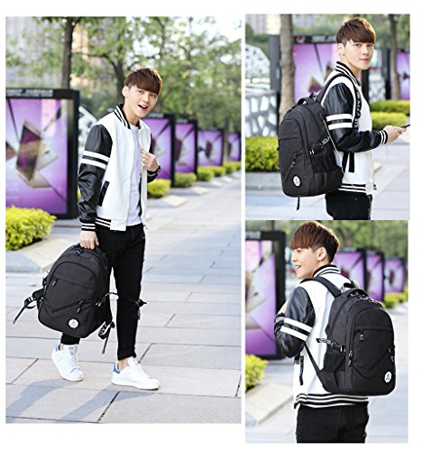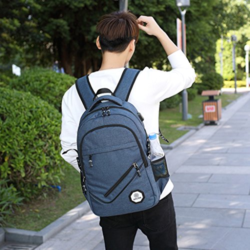 -. Feature : MATERIAL-Made of durable Nylon, high quality metal buckle and genuine zips. It's a very durable backpack. Adjustable shoulder straps for carrying comfort. / SIZE: 17.7"x11.8"x5.9" 45cm*15cm*30cm. / COMPARTMENTS: 1 main pocket + 6 functional pockets. The main pocket is large enough to put your clothing, books and your daily things. Five functional pockets can be used for your tower, brush, magazine, water bottle, umbrella and so on. / STYLE: Eco-friendly casual life style. Great Rucksack for hiking, camping, traveling; It is also a perfect school bag for men, women, teens, girls, boys, college students . High Density Canvas Backpack/ Rucksack/ School bag/Shoulder bag/Cross body bag/sling bag. / It can well product your 14 inch laptop. Special design of the shoes compartment enables your bag to be clean and more useful.