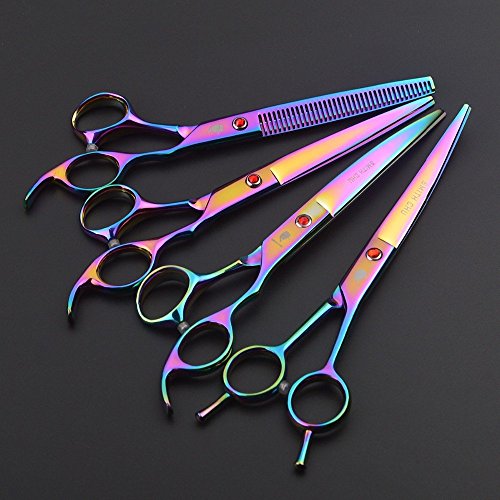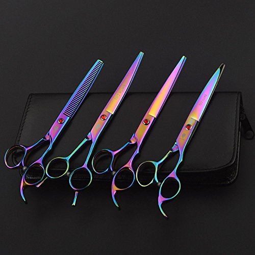 7 Inch Professional Purple Dog PET GROOMING THINNING SCISSORS SHEARS Straight&Curved&Thinning 4 Pcs Kits