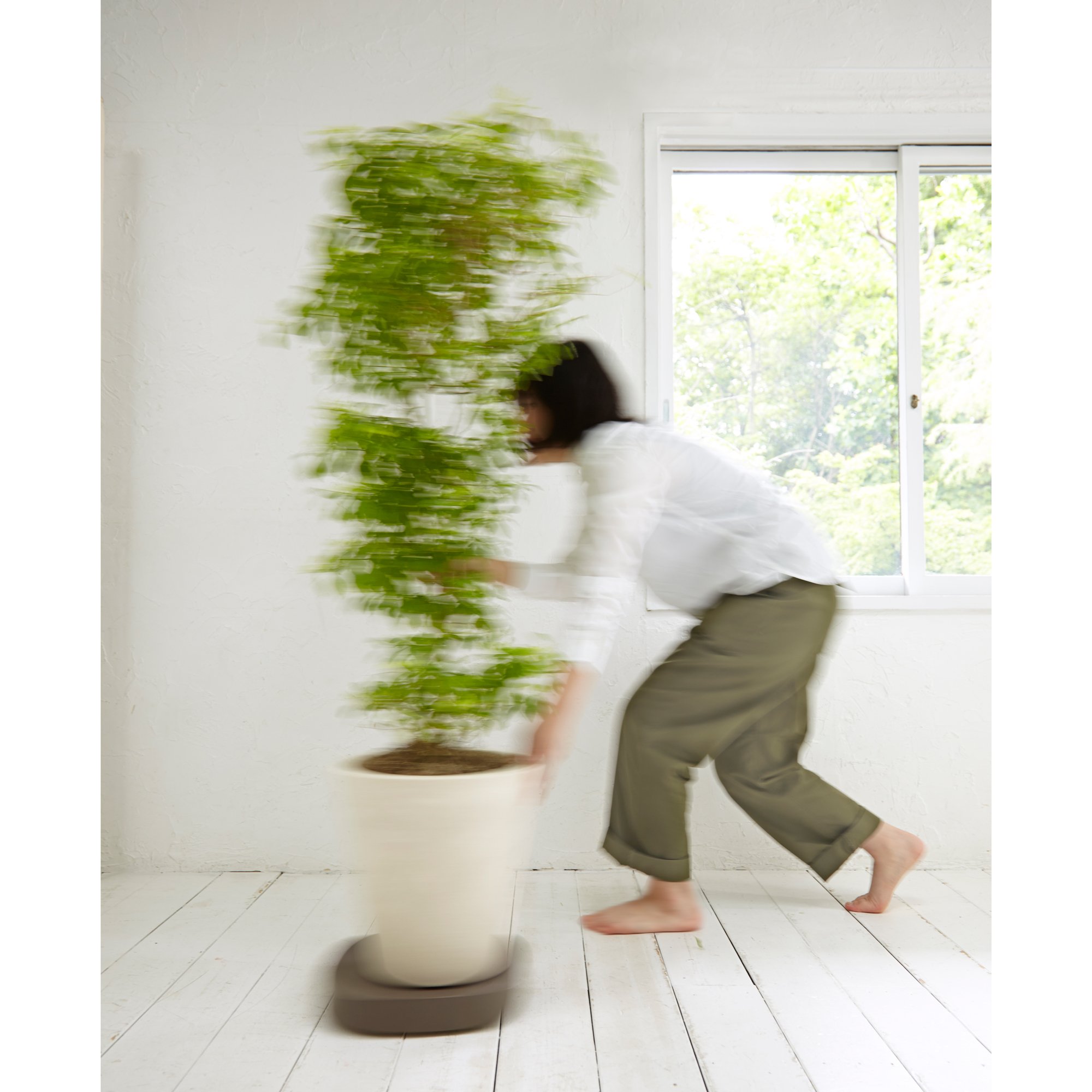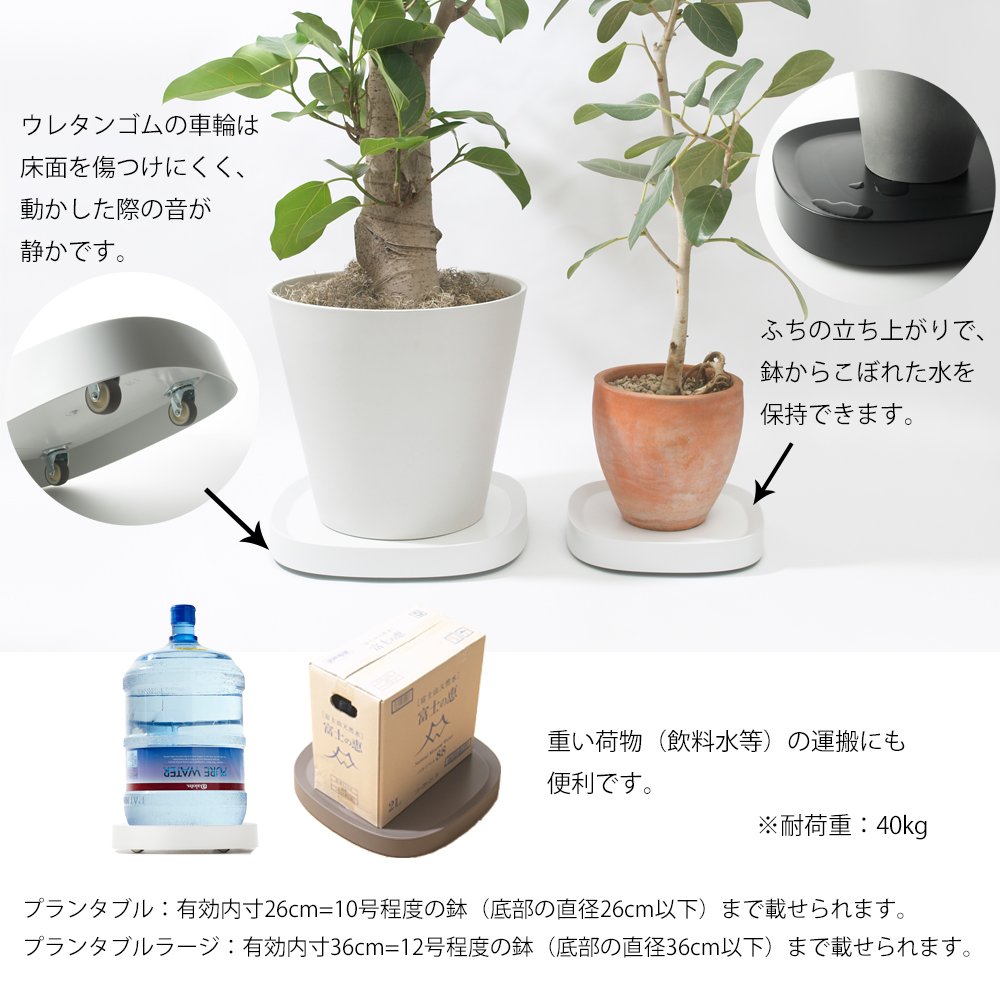"Plantable" is a flowerpot tray with casters that is convenient for moving pots of foliage plants.