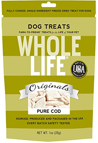 -. Binding : Misc. -. Brand : Whole Life Pet Products -. EAN : 0895777000540 -. Feature : 100% Pure Human Grade Freeze Dried Wild Atlantic Cod Treats / Protein rich plus low in fat & calories-a healthy snack for any dog or cat / Sourced, produced and packaged in the USA / Every batch tested and verified safe / Made in-house in small fresh batches daily-by our pet loving staff -. Label : Whole Life Pet Products -. Manufacturer : Whole Life Pet Products -. Model : 895777000540 -. MPN : 895777000540 -. NumberOfItems : 12 -. PackageQuantity : 1 -. PartNumber : 895777000540 -. ProductGroup : Pet Products -. ProductTypeName : PET_SUPPLIES -. Publisher : Whole Life Pet Products -. Size : 1oz -. Studio : Whole Life Pet Products -. Title : Whole Life Pet Single Ingredient USA Freeze Dried Cod Filet Treats for Dogs, 1-Ounce -. UPC : 895777000540