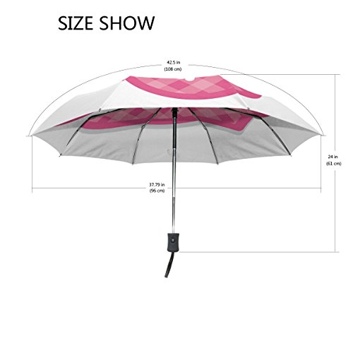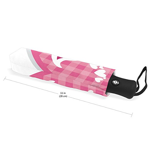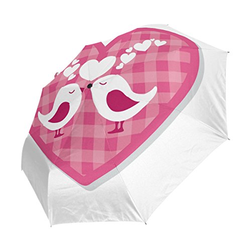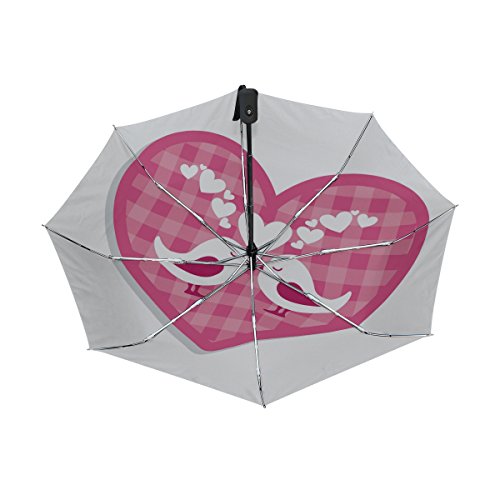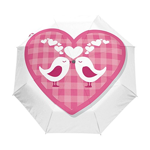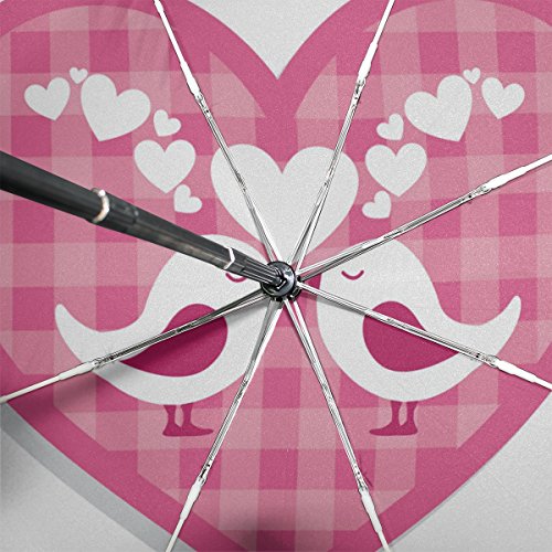 materials: made of 100% polyester pongee waterproof fabric. Weight: it is lightweight, 393g. Single-sided printing. Style: automatic open and close umbrella; foldable mini travel umbrella. Can be used on rainy and snowy day. Suitable for boys, girls, women and man. Feature: Light weight, small, portable. This Bird Couple Kiss Romantic Valentine Love Pink Lumberjack Plaid Heart Over White Background folding umbrella is also a perfect Christmas gift, new year gift, and back to school gift. 0