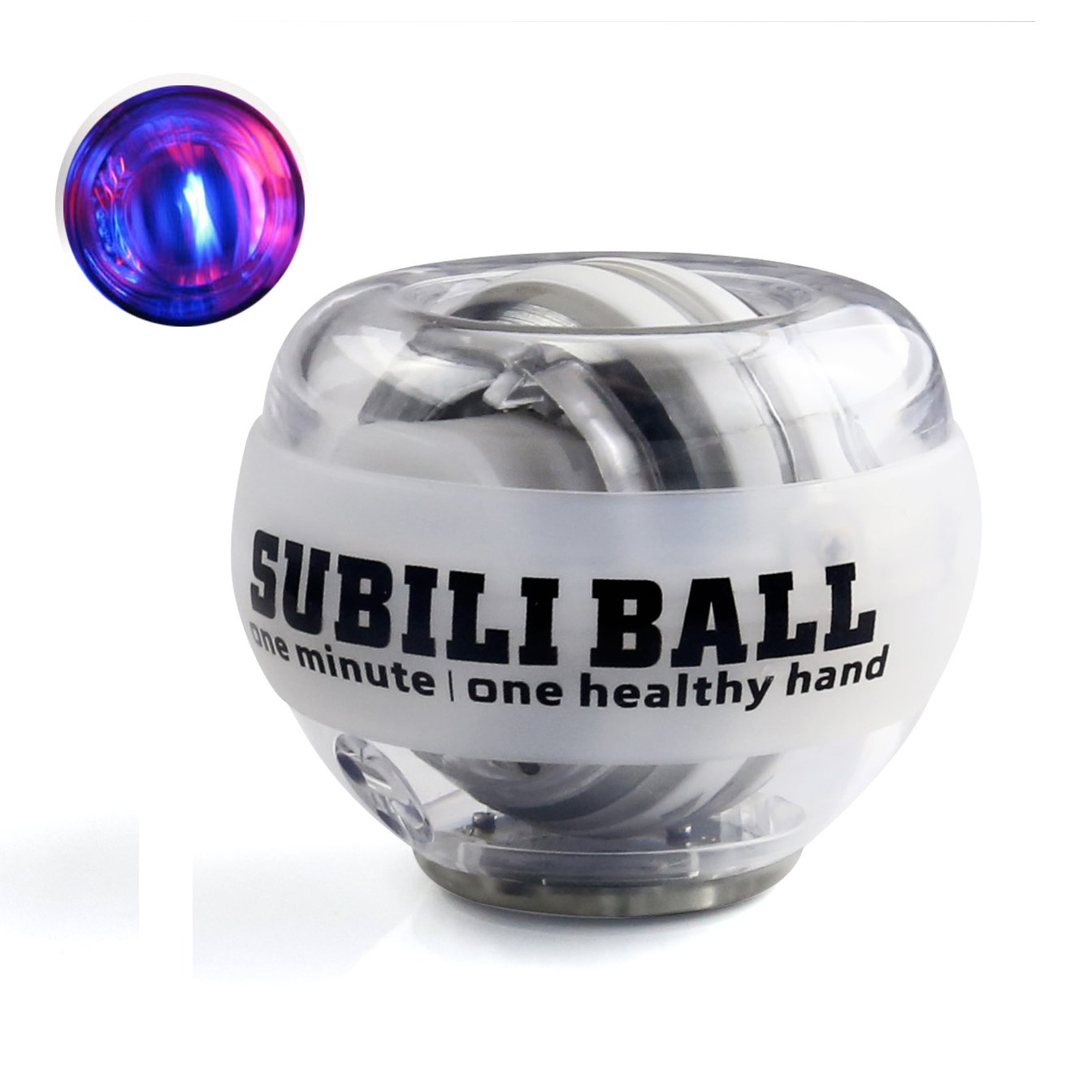 The wrist ball performs the strength training of the finger, wrist, forearm etc. by the centrifugal force of the rotation of the ball.
