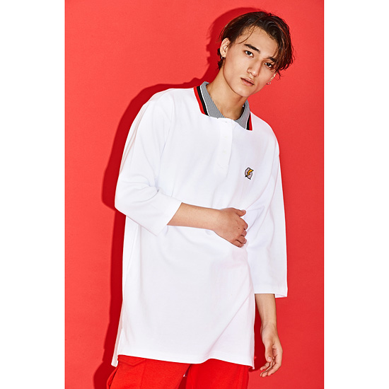 - 라인 배색을 적용한 카라로 포인트를 준 공용 티셔츠.