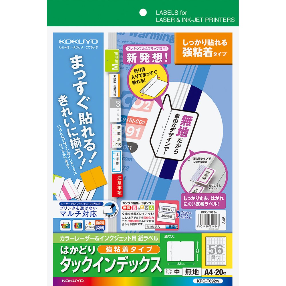 Kokuyo printer shared label seal tack index 56 face 20 sheets plain KPC-T692W