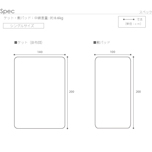 サイズ:ケット-140x200cm、パッド-100x200cm