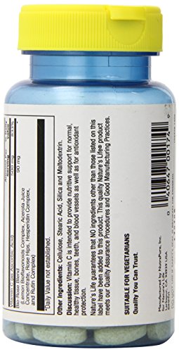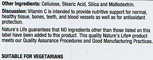 ReleaseDate : 2015-06-22 Studio : Nature's Life Publisher : Nature's Life Binding : Health and Beauty Product Description Vitamin C is intended to provide nutritive support for normal, healthy tissue, bones, teeth, and blood vessels as well as for antioxidant protection. Nature’s Life guarantees that no ingredients other than those listed on this label have been added to this product. This quality Nature’s Life product meets our quality assurance procedures and good manufacturing practices. 0