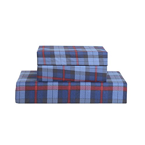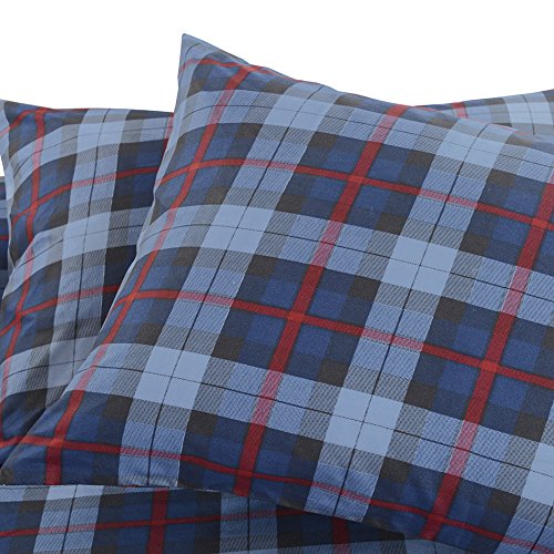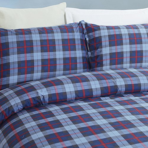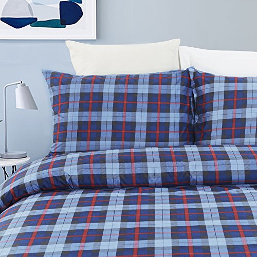 Vaulia Lightweight Microfiber Duvet Cover Set, Plaid Printed Pattern Design, Blue - King