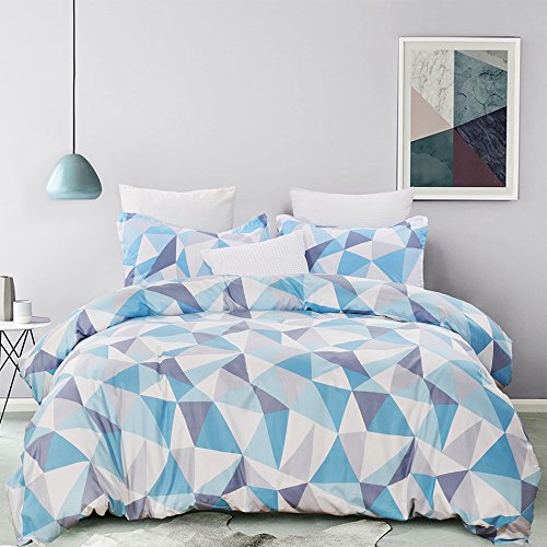 Vaulia Microfiber Duvet Cover Sets, Printed Diamond Pattern Design, Blue - Twin Size