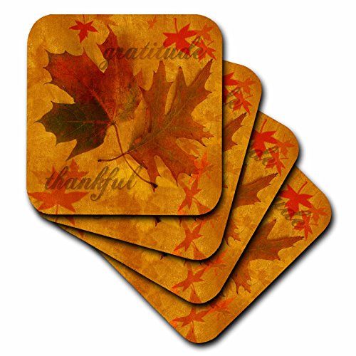 3dRose cst_52315_2 Autumn Leaves with Gratitude-Soft Coasters, Set of 8