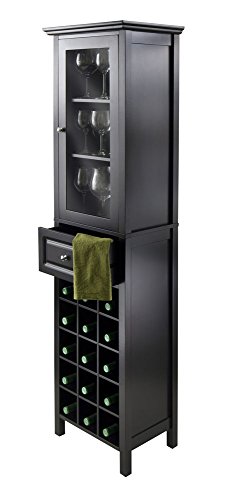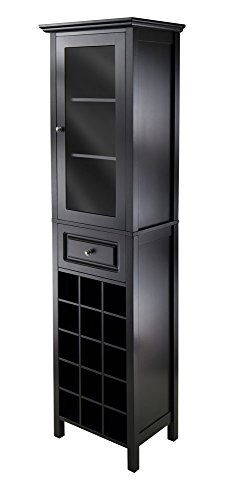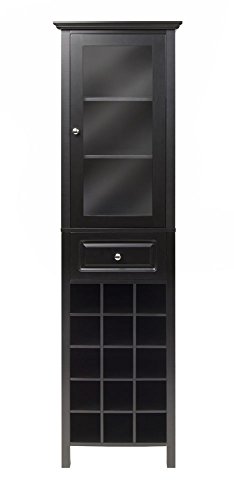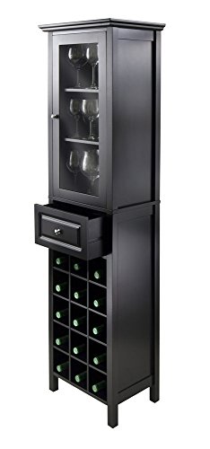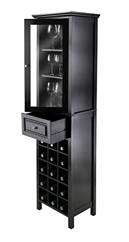 -. Feature : Product Type: Wine Storage. Collection: Burgundy. / Material: Composite Wood / Glass. Color Finish: Black. / Assembly Required: Yes. Furniture Style: Transitional. / Product Dimension (WxDxH): 18.11 x 12.99 x 66.85. Product Weight: 59.85 Lbs. / Country of Origin: China