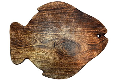 Javi Chopping Board - Wood Non Slip Wooden Cutting Boards with Handle for Slicing Cheese Bread Lemon Fruit Veggies Natural Non Toxic and Food Kitchen Accessories (Fish Shape Platter)