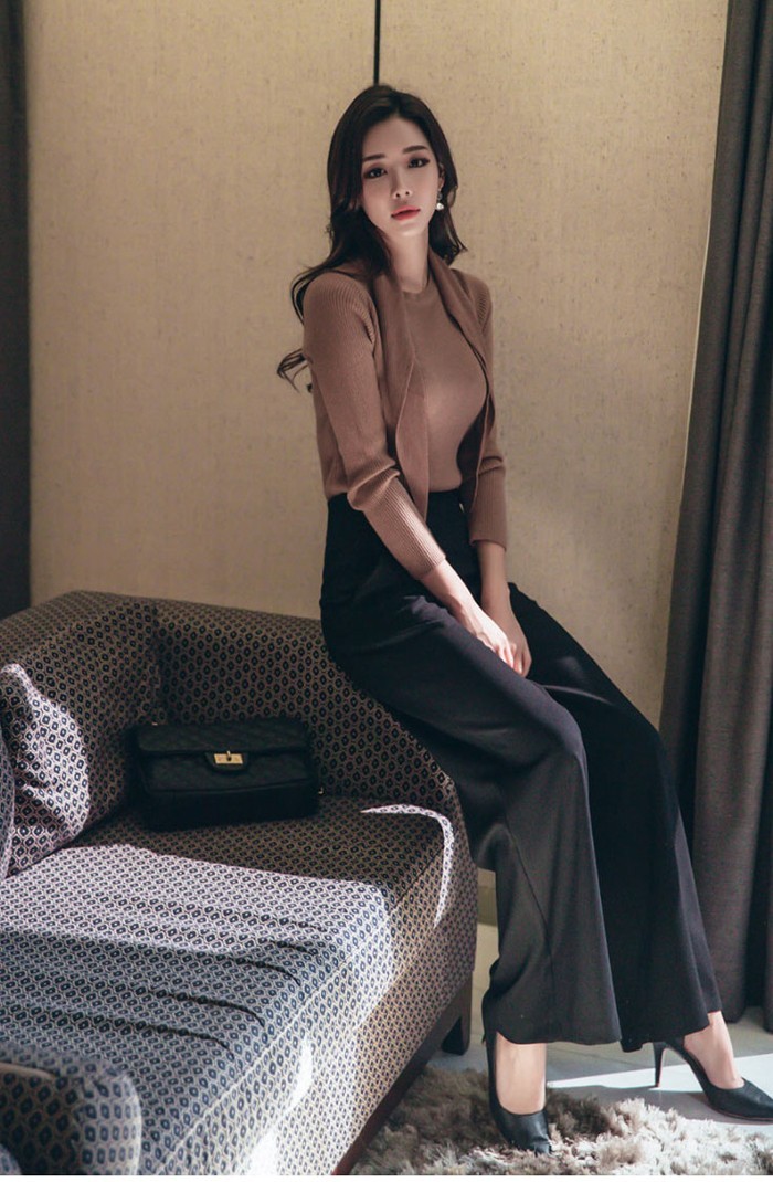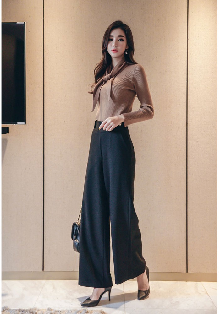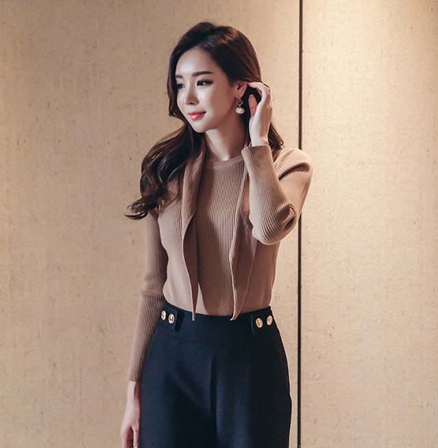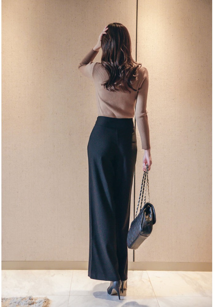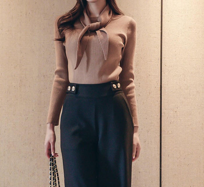 商品名:ニット トップス 長袖 リブニット 無地