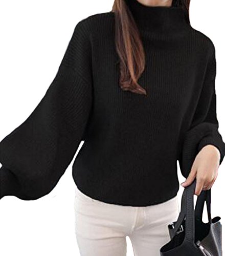 -. Title : (クリップカム) clipcam ハイネック パフスリーブ 七分丈 ふんわり バルーン 袖 リブ セーター ニット レディース