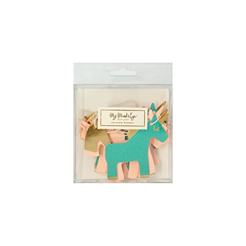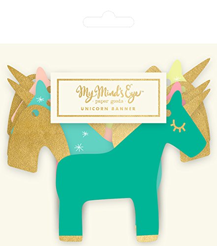 Studio : My Mind's Eye Publisher : My Mind's Eye Binding : Health and Beauty Product Description The perfect finishing touch, sprinkle a little magic onto your party with this unicorn banner from My Mind's Eye. Unicorns in neon colors are strung together to create this beautiful mini banner perfect for any princess, rainbow or unicorn party. Each unicorn is embellished with gold foil and approximately 3 inches tall. Contains 1 banner approximately 8 feet long 0