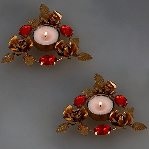 Indian Home Decorations Christmas Gifts Lights Candle Holder - Set Of 2 - Floral Arrangements