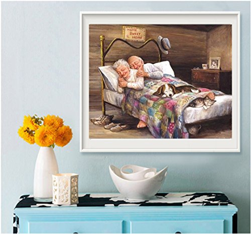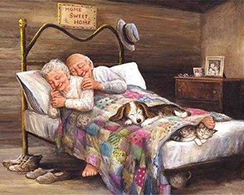 21secret 5D Diamond Diy Painting Full drill Handmade Sweet family Older Couples Dog Cat on Bed Cross Stitch Home Decor Embroidery Kit