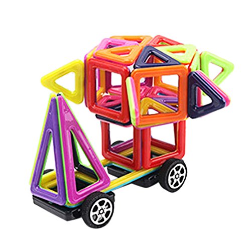 -. Feature : Great set: Include 12pcs magnetism square shape blocks, 19pcs magnetism triangle shape blocks, 2 groups magnetism wheel shape toys, 1 rectangular shape block, 26pcs letter card blocks without magnetism and self-adhesive for your kid's playing. / Useful: These toys unique shape, can be freedom combined. Develop children's fine motor development, cognitive development of color, teamwork ability, artistic cognitive, sensory, cognitive ability, practical ability and imagination. / Advantage: Play and fun. Fits for all age kids, a best way for them to explore the world of geometry and architecture. Kids can follow the idea booklet or create their own design! / Durable: Made of eco-friendly ABS plastic, nontoxic and lightweight, smooth edge of each piece will never hurt baby's little hands. / Convenient: Compact with a storage box, which makes it easy to put all the pieces back after playing, handy to carry and store. Best educational stacking blocks kits for your lovely boys and girls.