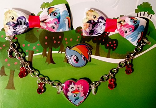 MY LITTLE PONY ACCESSORY SET - 1 BRACELET, 1 RING & 2 BOWS
