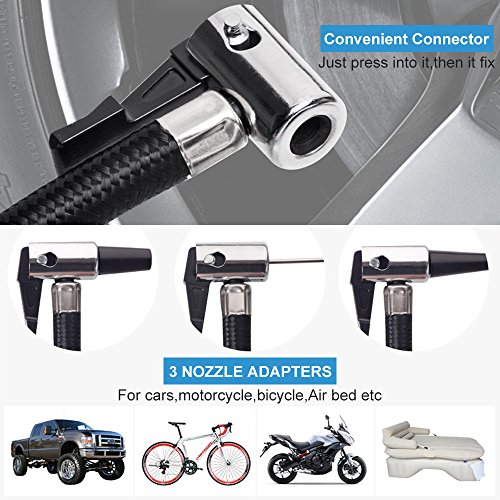 MULTIFONCTION:3 Nozzle Adapters-Our Tire inflator can be used for cars,motorcycle,bicycle,air bed etc