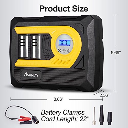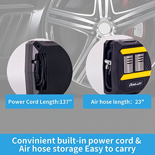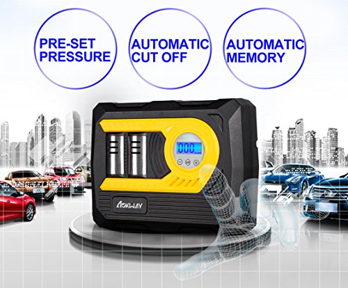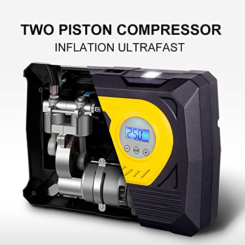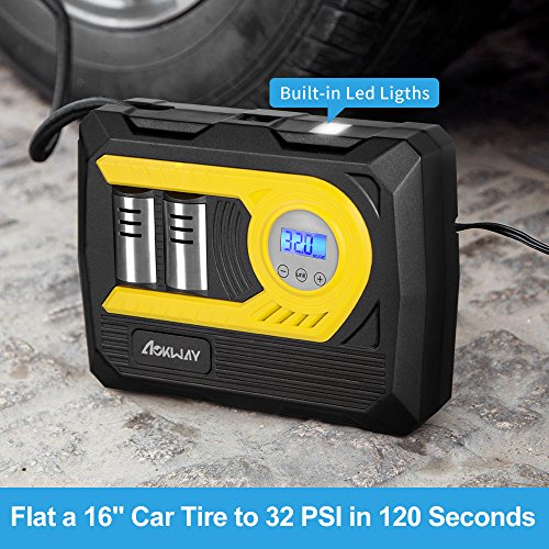 Car Air Compressor With Digital Gauge Double Cylinder NEW 2017 MODEL Heavy Duty Portable Auto Tire Inflator Pump 12V DC to 100 PSI Led Lights