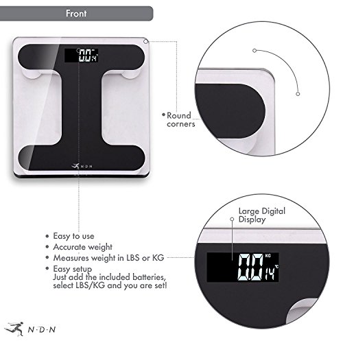 Digital Bathroom Scale: Step-On Technology, clear tempered glass (396 LBS Limit)