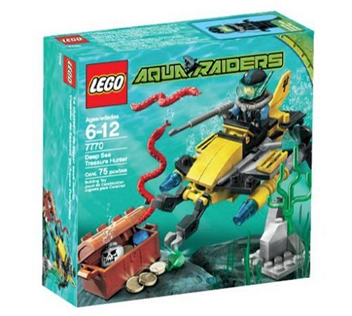 -. Binding : Toy -. Brand : L.E.G.O -. EAN : 0673419091398 -. Feature : Dive beneath the waves for this deep-sea adventure with this seeker of sunken treasures / Armed with a harpoon gun, he pilots his sub-scooter in search of a long-lost chest of goldwatch out for the sea snakes that stand guard / Includes diver mini figure / Set contains 75 pieces / For ages 6 - 12 years -. IsAdultProduct : 0 -. Label : L.E.G.O -. Manufacturer : L.E.G.O -. Model : 4498864 -. MPN : 007770 -. PackageQuantity : 1 -. PartNumber : 007770 -. ProductGroup : Toy -. ProductTypeName : TOYS_AND_GAMES -. Publisher : L.E.G.O -. ReleaseDate : 2007-08-01 -. Size : Small -. SKU : L.E.G.O7770 -. Studio : L.E.G.O -. Title : L.E.G.O Deep Sea Treasure Hunter -. UPC : 673419091398 -. Warranty : Please check with the manufacturer regarding warranty and support issues.