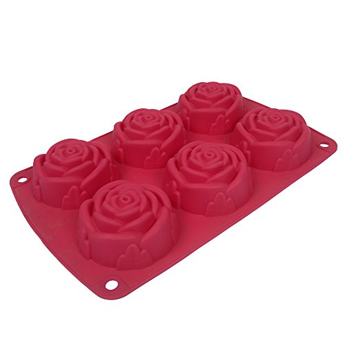 Webake 6-Cavity Silicone Cake Molds, Silicone Rose Mold, Silicone Mold for Cake, Homemade Soap ( Red, 1 pcs)