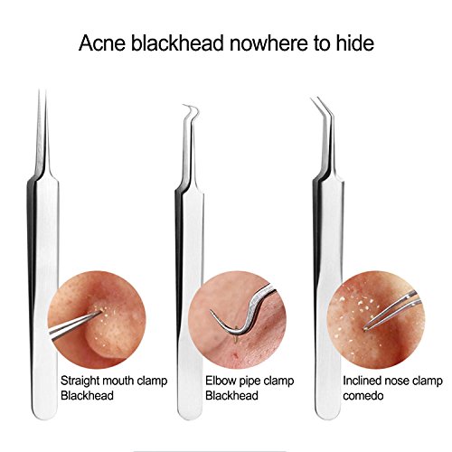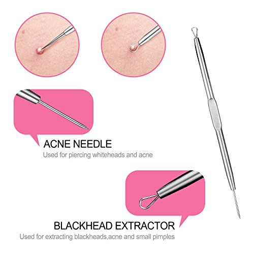 - 6 blackhead remover tools: They are multifunctional and perfect for acne pimple, comdone, whitehead, etc. 1 ear wax included for handy use.