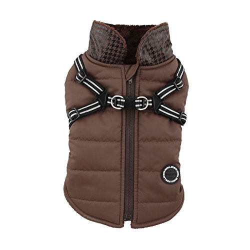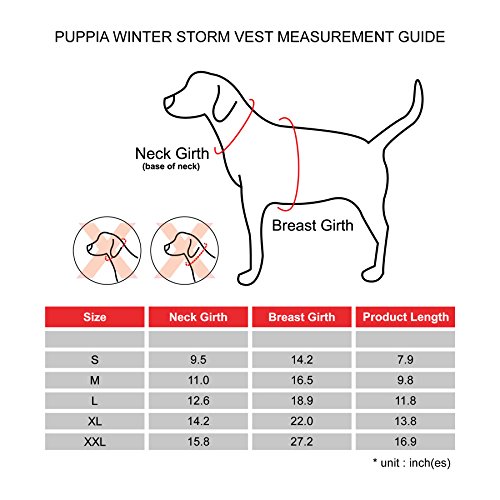 Studio : Puppia Int'l Inc. Publisher : Puppia Int'l Inc. Binding : Misc. Product Description The Winter Storm is a Winter fleece vest with integrated harness jumper/jacket that will surely keep your furry friend warm through the cold season. It features a Backside zipper closure and fits like a vest (the collar portion), with an added Puppia Sports rubber label for looks. It is available in Red, Brown and Black in sizes ranging from Small to Double XL. Please note that because these products were created with small/medium dog breeds in mind, larger sizes (i.e. Large, Extra-Large, etc.) do not necessarily mean larger breeds. Please refer to image of the size chart. It is very important to measure your dog with a tape measure according to the size chart. As a general rule of thumb, if your dog falls in between sizes, it is usually better to go up a size. Any weight figures are for estimates only. Always use actual measurements. Please note that when measuring your dog for clothing, it's very important to have an accurate measurement of your dog's neck and chest girth. IMPORTANT: Please note that when measuring your dog, the measurement for the neck must be taken at the BASE OF THE NECK and chest girth must be taken behind the front legs. Also it is important to take into account the size of the dog's head as well as neck girth and chest girth. Since some dogs have a much larger head than their neck, please be sure that the neck opening is large enough to slide over your dog's head. 0