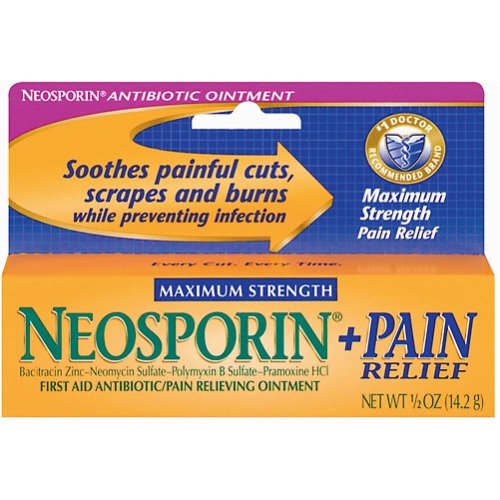 -. Title : Neosporin First Aid Antibiotic Ointment Maximum Strength Pain Relief, 0.5-Ounce