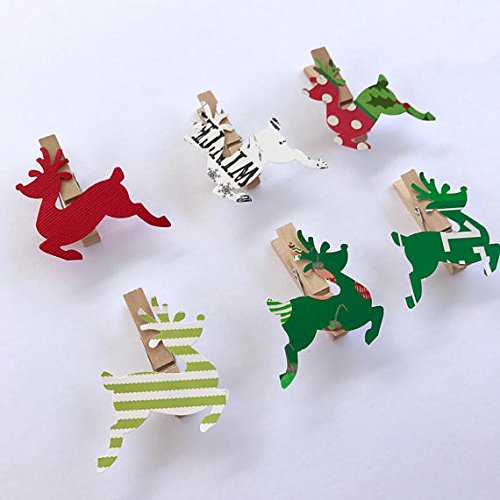 Product Description Set of 12 reindeer clothespins in Christmas patterns. A fun Thanksgiving or Christmas decoration. Use to hang cards, photos or as an ornament. Not a toy for children. 0