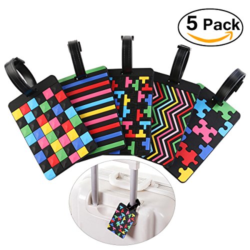 Package Including 5 * PIXNOR Soft PVC Luggage Baggage Handbag Tag with Geometric Pattern 0