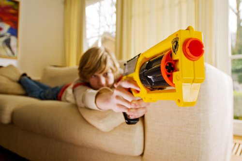 -. Feature : Six-dart barrel with flip-open action / Blaster comes with six darts and instructions / Ages 6+