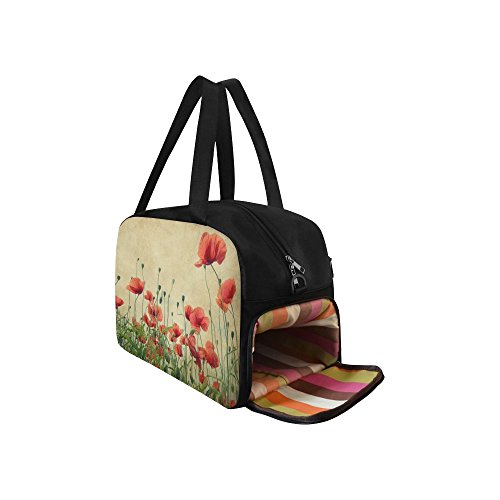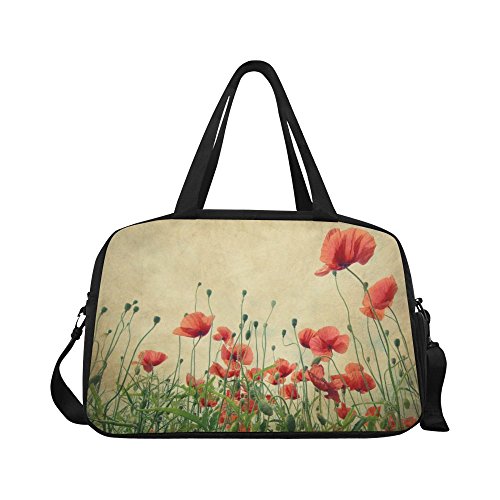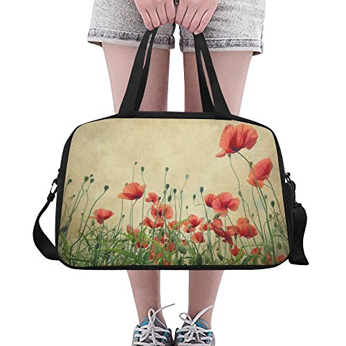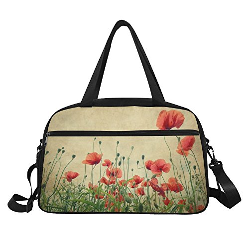 (InterestPrint)/Accessories/Luggage, Bags Travel/DIRECT FROM USA/InterestPrint Travel Duffel Tote Bag with Shoes Compartment for Women Men Poppy Flower Field