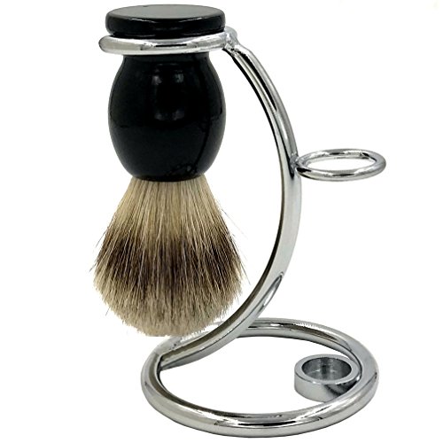 Genuine Badger Hair Shaving brush With Perfect Chrome Shaving Stand/Safety Razor Stand/Shaving Brush Stand Holder for Shave Brush & Double Edge Safety Razor