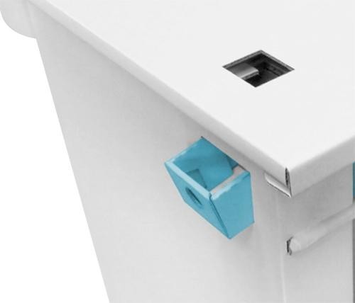 ハサミやカッターなどの工具や接着剤は一切不要。小学校就学前のお子様とも簡単に組み立てて頂けます。強化段ボールを使用しているので丈夫でスマートな構造となっており、組立後は紙の切断面は殆ど露出しないので、手を切ったりする心配もありません。天面にはフィルム貼り加工を施している為汚れや水に非常に強く、水性ペンも拭取可能です!! |