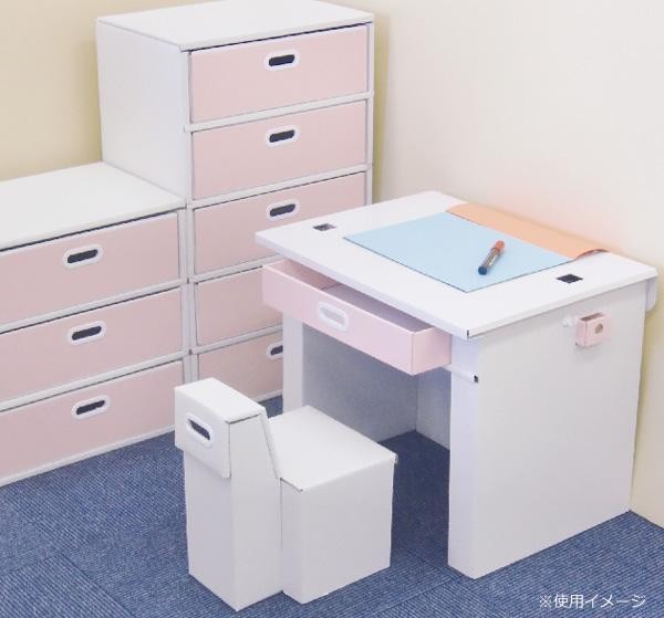 | ハサミやカッターなどの工具や接着剤は一切不要。小学校就学前のお子様とも簡単に組み立てて頂けます。強化段ボールを使用しているので丈夫でスマートな構造となっており、組立後は紙の切断面は殆ど露出しないので、手を切ったりする心配もありません。天面にはフィルム貼り加工を施している為汚れや水に非常に強く、水性ペンも拭取可能です!! |