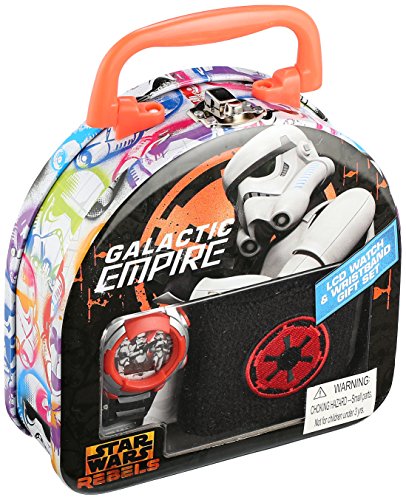 Watch and wristband set featuring Stormtrooper character dial on watch and black wristband with contrast red Imperial logo