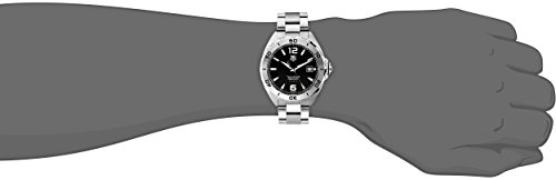 -. Binding : Watch -. Brand : TAG Heuer -. Color : black -. Department : mens -. EAN : 0755702097260 -. Feature : Watch with black dial featuring notched bezel, logo shield under 12 o'clock, and date window at 3 o'clock / 41 mm stainless steel case with synthetic-sapphire dial window / Swiss automatic movement with analog display / Stainless steel link bracelet with deployant-clasp closure / Water resistant to 200 m (660 ft): In general, suitable for professional marine activity and serious surface water sports, but not scuba diving. -. Label : TAG Heuer -. Manufacturer : TAG Heuer -. Model : WAZ2113.BA0875 -. MPN : WAZ2113.BA0875 -. PackageQuantity : 1 -. PartNumber : WAZ2113.BA0875 -. ProductGroup : Watch -. ProductTypeName : WATCH -. Publisher : TAG Heuer -. Studio : TAG Heuer -. Title : TAG Heuer Men's WAZ2113.BA0875 Stainless Steel Automatic Watch -. UPC : 755702097260