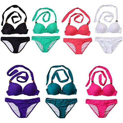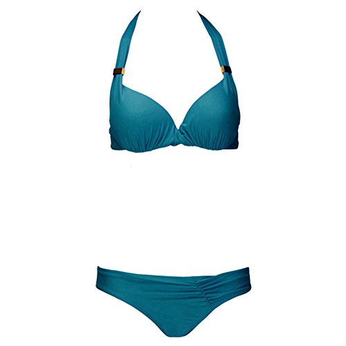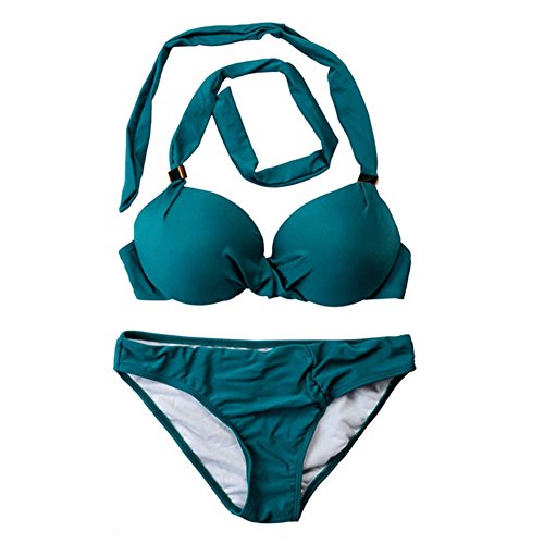Title : Ayliss Sexy Lady Fold Padded Push-Up Bra Halter Strap Bikini Dark Green